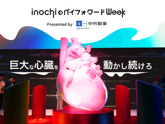inochiのペイフォワードを象徴する巨大な心臓が動き出す。皆の心拍が大きな一つの鼓動に。誰かのいのちを想う気持ちが、未来のいのちを輝かせる瞬間をぜひご覧ください。