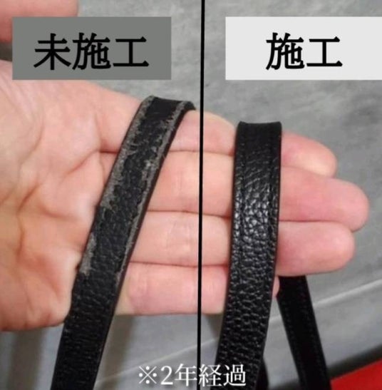 ▲ソフトコーティングし2年経過した鞄の持ち手比較