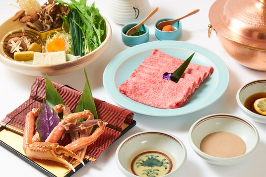 特撰和牛と特撰生かにをしゃぶしゃぶ または すきしゃぶしゃぶで。山海の美味を一度に楽しめる贅沢な「松そろえ」