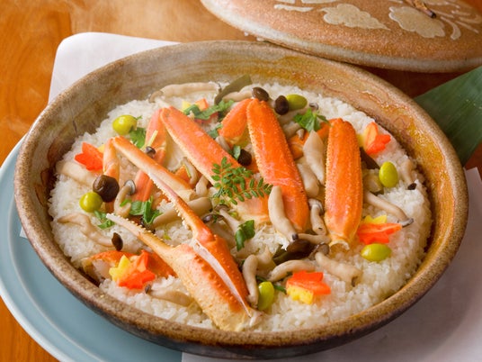 特撰生かにをふんだんに使い、専用の焙烙釜で焚き上げた通好みのオリジナルメニューです。炊き上がりまで40分少々かかりますので、ご来店の際はお早めにご注文ください。