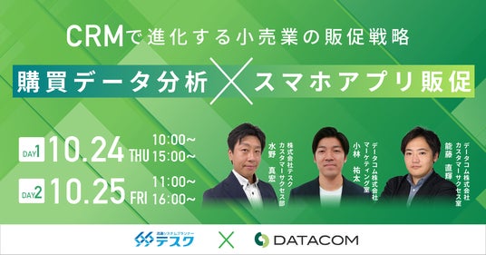 流通業の業務システム構築に特化したシステムベンダーである株式会社テスク(本社:愛知県名古屋市)は、2024年10月24日(木)、10月25日(金)に株式会社データコムと共催で、小売業の販促戦略に関するセミナーを開催します。