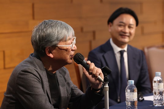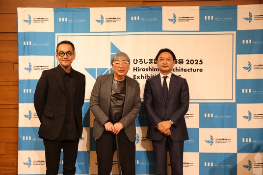 記者発表会では、総合ディレクターの白井良邦、チーフキュレーターの前田尚武が『ひろしま国際建築祭 2025』の説明を行い、ゲストに建築家の伊東豊雄氏を迎え、建築が担う未来の姿についてディスカッションを実施した。(C)筒井義昭