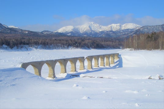 ぬかびら源泉郷の周辺に点在する旧国鉄士幌線コンクリートアーチ橋梁群の中でも、特に代表的なコンクリートアーチ橋です。