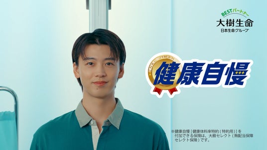 大樹生命保険株式会社(代表取締役社長 吉村 俊哉、以下「当社」)は、当社所定の付加条件を満たす場合に、大樹セレクトの対象特約の保険料がお安くなる「健康自慢[正式名称:健康体料率特約(特約用)]」をより多くの皆さまに知っていただくために、竹内涼真さんとやす子さんが出演する新CMを10月4日(金)から放映しますので、お知らせします。