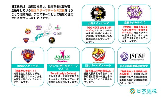 (日本免税は、地域に根差し、地方創生に繋がる活動をしている地元スポーツチームの支援を行うことで地域貢献、プロスポーツとして幅広く認知されるサポートをしています。)
