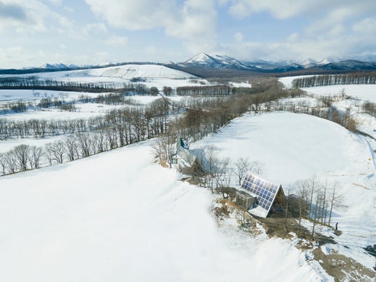 もらう宿泊施設として、2023年6月、牧場敷地内にオープンしました。一般的な宿泊施設のように、単にくつろぐ場所ではありません。厳しい自然を目の当たりにしながら、「何も無い場所」に身を置くことが豊かに感じられるような、価値転換を目指し、建築設計されました。そこには「無いからこそ、宿泊者はやりたいこと、自分にとって新しいことへ意識を集中して、自らの『開拓』が始まってほしい」という代表の想いが根底にあります。