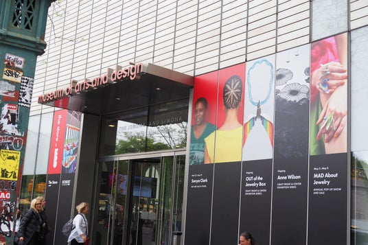 ニューヨークの中心部にある Museum of Art and Design で開かれた MAD About Jewelry に参加。美術館の外壁には NANA WATANABEの作品の写真が飾られている。