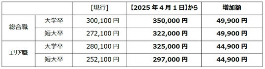 ●既に入社している新卒の総合職・エリア職(非管理職)についても、給与水準を21,200円~49,900円引き上げます。