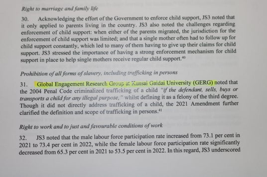 国連人権理事会のサマリーには、「Kansai Gaidai University」と明記されています