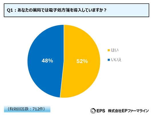 回答者のうち52%が電子処方箋を導入しているという結果となりました。