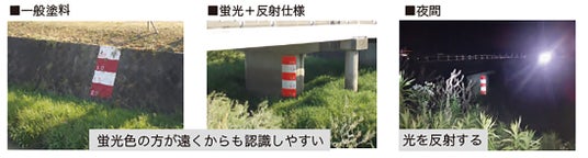 さらに、蛍光色が河川カメラでも鮮明に映るため、遠隔からでも水位の状況を簡単に確認でき、早めの避難判断が可能となります。