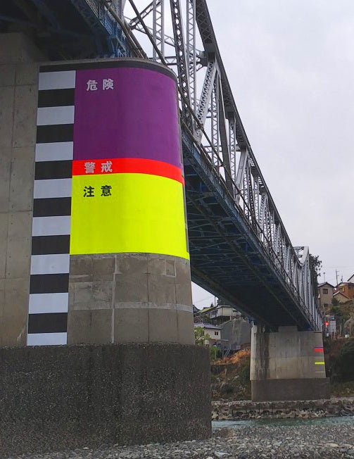 「蛍光色の避難目安の水位ライン表示」国土交通省中部地方整備局浜松河川国道事務所様 天竜川鹿島橋
