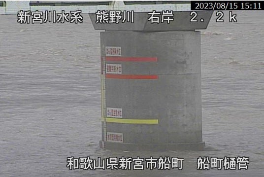 「蛍光色の避難目安の水位ライン表示」国土交通省近畿地方整備局紀南河川国道事務所様 熊野川 成川水位観測所