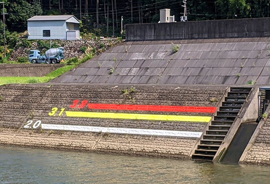 滋賀県長浜市では、2022年8月に発生した記録的な大雨で河川が氾濫し多くの住宅が浸水しました。住民は県が橋脚に設置した蛍光塗料を使用した量水標の目盛りを確認し、避難指示が出る前の的確なタイミングで近くの高台に避難を開始しました。住民約30人にケガはなかったそうです。