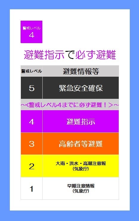 このプレートは、河川改修に伴い基準水位が頻繁に変更される場合でも、貼りかえる事によって柔軟に対応する事を可能にするものです。「大雨の警戒レベルを分かりやすく伝える5色」を取り揃えています。さらに、必要に応じて文字入れやカスタマイズ加工も承ります。