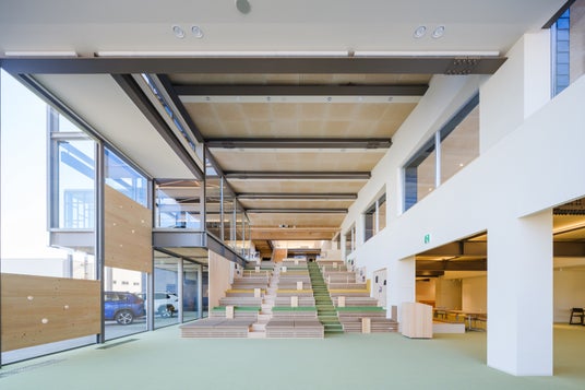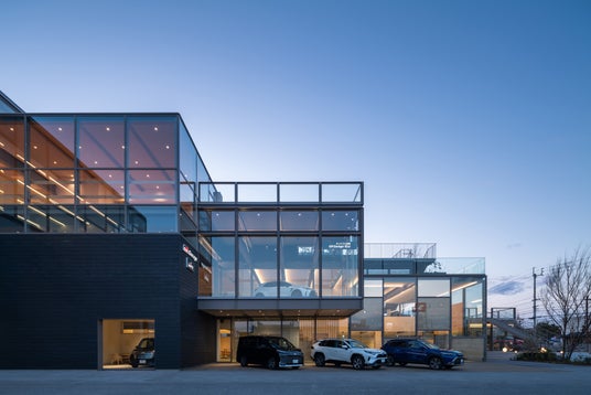 モビリティ社会の変革を見据え、単に車を売るだけでなく「愛媛の人々を繋ぎ、地元の可能性を広げ、地域繁盛を目指す」という目標を掲げるクライアントと共に、大きな屋内キッズスペースや無料開放のホール、コワーキングスペースやカフェなどを備えた複合施設としてこれまでにないショールームの形を模索したカーディーラーの新店舗である