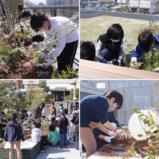 子ども達と城山で拾ったどんぐりを育てて植樹し地域の生態保全に貢献
