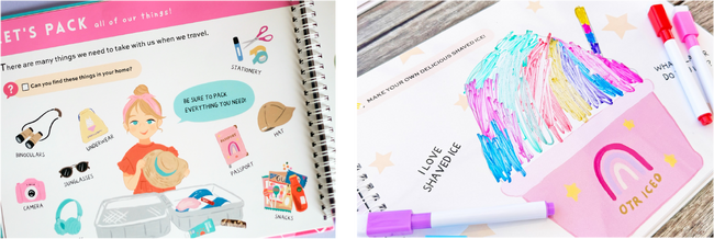 ・40ページに渡るアクティビティは「旅」というものへの興味や好奇心が膨らませ、子供の想像力を鍛えます。