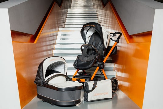 AMG GT²モデルのベビーストローラー(右)とプレミアムキャリーコット(左)
