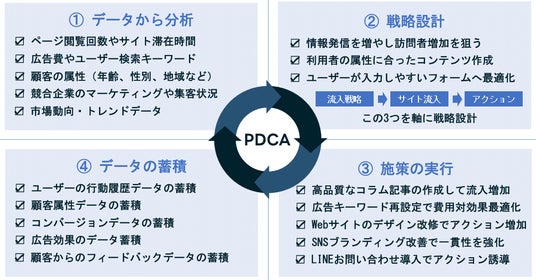 デジタルマーケティングの成功には、企業が持つウェブサイトデータや顧客行動データから効果的な方向性を見出し、行動に移す体制が不可欠です。