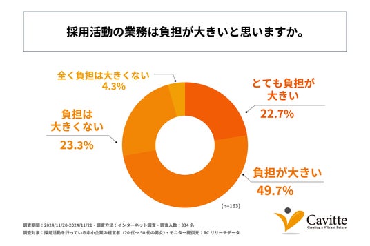 採用活動をしている中小企業の7割以上が、採用活動の業務は負担が大きいと感じている