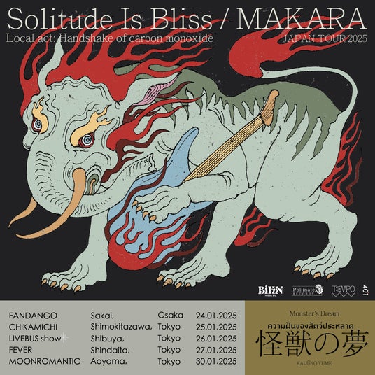 タイのオルタナティブロックシーンを代表するバンド、Solitude Is Bliss(チェンマイ)と MAKARA(バンコク)が、日本での初ライブツアーを2025年1月に開催します!さらに、日本に在住するタイ人、Handshake of Carbon Monoxideも特別出演!