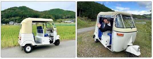- 地域住民と交通課題の解消に向けたワークショップを重ねた中で、小回りが利き、移動中に里山ならではの風景を楽しめる乗り物として、東南アジアの街中や観光地で活用されている三輪自動車「トゥクトゥク」に着目しました。