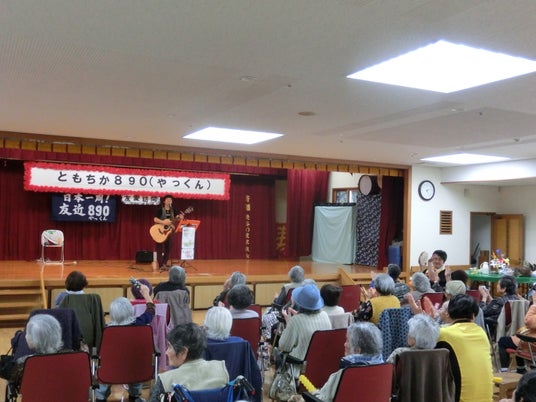 Tomochika890(やっくん)は全国47都道府県の高齢者施設、障がい者施設、学校、保育園などを巡り、書道パフォーマンスと音楽ライブを通じて多くの人々に笑顔を届けてきました。
