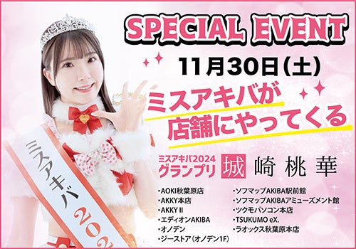 11月30日(土)ミスアキバ2024グランプリ「城崎桃華」キャンペーンのPRとして一部対象店舗を巡回いたします。
