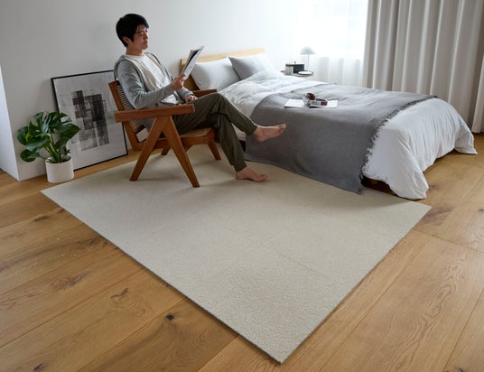 パパのくつろぎ空間にベッド前に敷くと、素足でも冷たくなく、優しい足触りでくつろぎ度もアップ