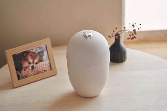 urnaは丸く、愛らしいデザインで、リビングなどの身近な場所に安置する他、骨壺を撫でる、抱くなど、亡くなったペットとふれあうことができます。また一般的な陶器の骨壺に比べて衝撃に強いため、万一部屋の中で落としても割れにくくなっています。