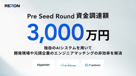 SESでAIを活用したマッチングを展開する株式会社Rezon(本社:東京都千代田区、代表取締役:田中優輝)は、Hyperionをリードインベスターとし、East Ventures、F Ventures から、総額3,000万円の資金調達を実施したことをお知らせいたします。