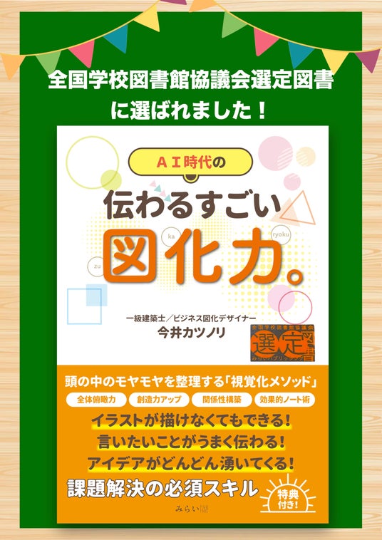 その想いを周囲に伝えながら準備を進める中で、本書が全国学校図書館協議会の選定図書に選ばれました!本書はビジネス書というカテゴリーの本ですが、「図化力」はあらゆる年齢層の方に使っていただける内容となっています。