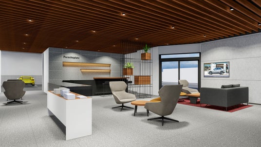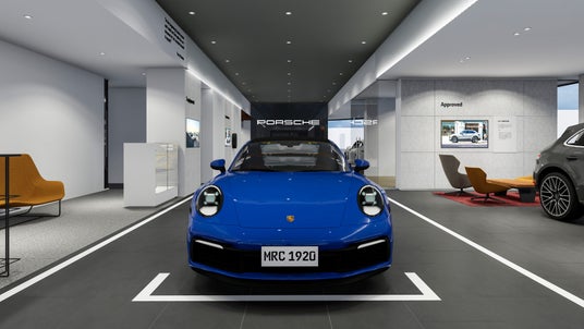 「ポルシェセンター浜松」は国道152号線ディーラー街の好立地に移転し、ショールーム面積は既存店舗の2倍以上となる510平方メートル に大幅拡大。屋内展示4台に隣接中古車展示場8台を加えた最大12台の展示スペースを完備し、試乗車は常時7台を用意します。また、EVスタンドとして多くのお客様にご利用いただける150kW急速充電システム ポルシェターボチャージャー (24時間、365日利用可能) を新設。ポルシェ正規販売店ならではの高品質なインテリアとゆったりとした個室商談スペースを備えた特別な空間で、お客様に心地良い時間を提供します。