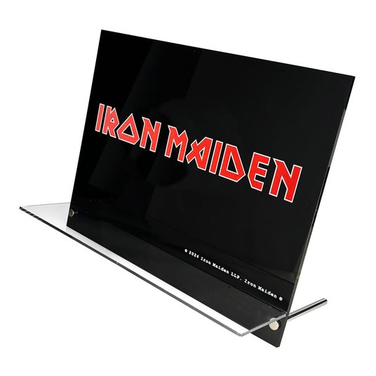 卓上メガネディスプレイ”IRONMAIDEN”のロゴが入ったアクリル製卓上ディスプレイ