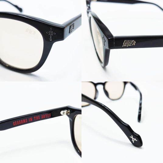 左右のテンプルに”SLAYER”の立体ロゴ、左テンプル内側にアルバムタイトルが入り、テンプル先には、ジャケットに度々描かれている剣をあしらっています。