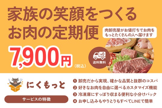 にくもっとはお肉のプロが厳選したお肉をLINEで簡単注文、好きに選べる定期便サービスです。