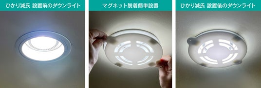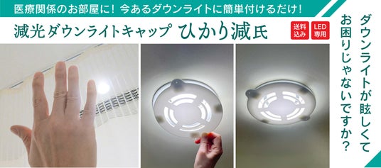 そのような、開発者の実体験から体調の悪い方も良い方も日中過ごしやすく、部屋の明るさを手軽に調光できないかと考えたのが、誰でも簡単に今あるダウンライトに付けるだけ、マグネット脱着式の【減光ダウンライトキャップ ひかり減氏】です。