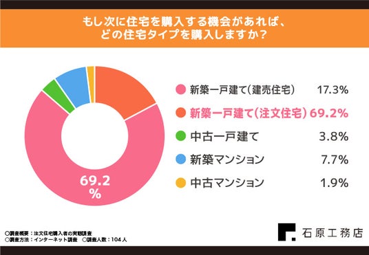 次に購入する住宅タイプ:69.2%が再び注文住宅を希望