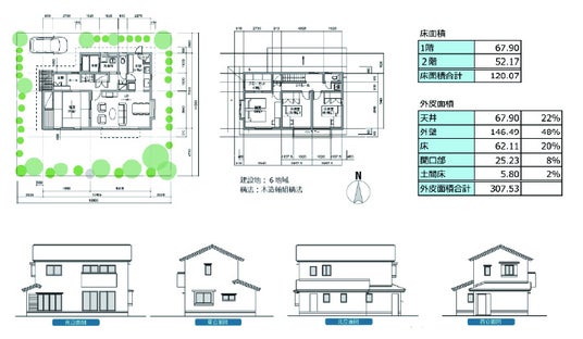 (自立循環型モデルプラン、外皮面積はHEAT20住宅システム認証 申請に使用する外皮面積を使用)