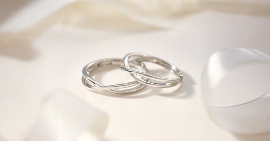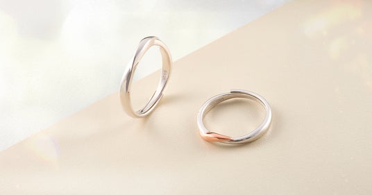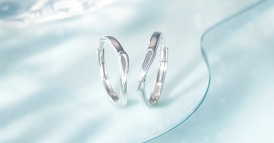 ねじれが織りなす立体的なフォルムのメンズリングは揺るぎない信頼と愛を表現し、滑らかなラインが中央で重なり合いうレディースリングは、ふたりが寄り添い支え合う姿を象徴しています。
