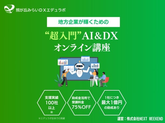 株式会社NEXT WEEKEND(愛知県名古屋市)は、地域みらい総研株式会社(東京都港区)と連携し、DX(デジタルトランスフォーメーション)およびAI研修サービス「照が丘みらいDXエデュラボ」を開始いたします。まずは自社グループ企業向けに研修を提供し、その成果を基に、より広く地域企業や全国企業に向けてサービスを拡大していく予定です。