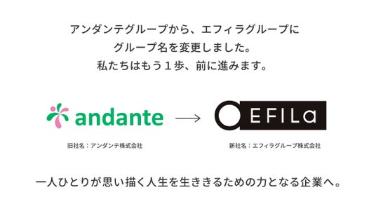 そして今年、創業から14年を迎える私たちアンダンテはグループ名を「エフィラ」に変更いたします。