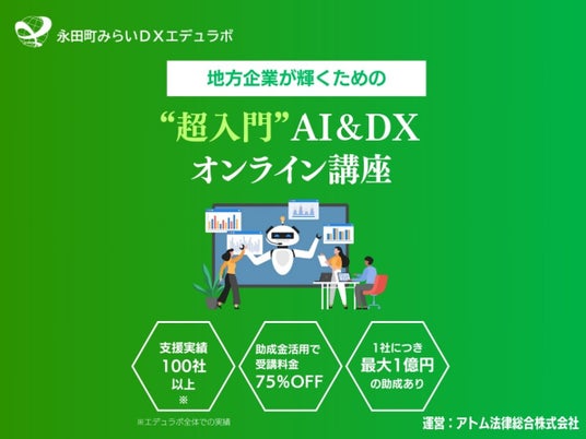 アトム法律総合株式会社(東京都千代田区)は、地域みらい総研株式会社(東京都港区)と連携し、DX(デジタルトランスフォーメーション)およびAI研修サービス「永田町みらいDXエデュラボ」を開始いたします。まずは自社グループ企業向けに研修を提供し、その成果を基に、より広く地域企業や全国企業に向けてサービスを拡大していく予定です。