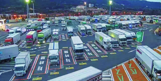 また、大型車ドライバーの確実な休憩機会を確保するため、駐車マス拡充や混雑情報の提供などに加え、東名高速道路 豊橋PA(下り)や新東名高速道路 引佐連絡路 浜松いなさIC路外駐車場をはじめとする計7カ所で駐車場予約システムの実証実験を実施しています。さらに2023年11月からは、長時間駐車の多い休憩施設の大型車駐車マスの一部を60分以内の利用に限定する「短時間限定駐車マス」の実証実験(39台分整備)を東名高速道路 足柄SA(上り)で開始しています。