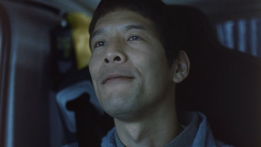 深夜のパーキングエリアで義務付けられた休憩を取る際に、家族の動画を見て“ささやかな幸せ”を感じる様子を描き、誰もが共感できる瞬間を表現しています。撮影日は図らずも大雨となり、家族のために奮闘する父親の姿を、雨音と共により力強く演出することができました。