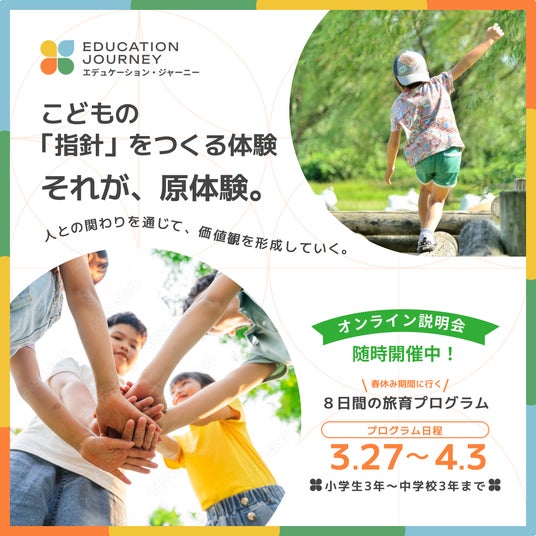 この度、株式会社Educare(本社:東京都中央区、代表取締役社長:守月洸介)は【多くの子どもたちに豊かな原体験を届けたい】という想いから、7泊8日の体験型教育ツアー「エデュケーション・ジャーニー」の提供を開始したことをお知らせいたします。