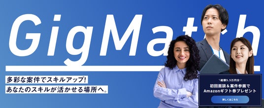 - 特典2適用条件:GigMatch経由で案件に参画し、1ヶ月以上稼働された方。(※初回のみ適用)
