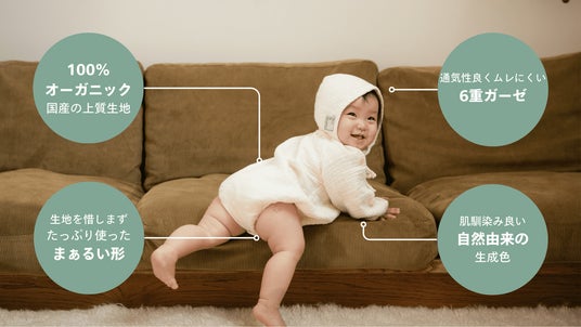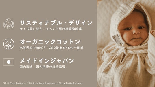 独自設計の"サイズ調節デザイン"で長く着て廃棄物も減らす、オーガニック100%の日本製ベビー服 - Makuakeにて12月29日より先行予約販売開始