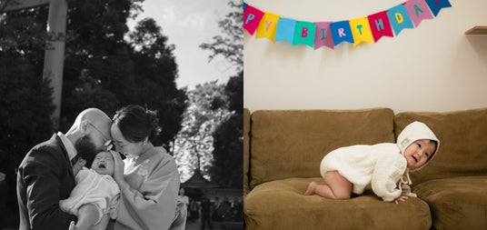 写真 左:お宮参り / 右:1歳誕生日祝い